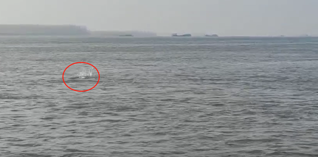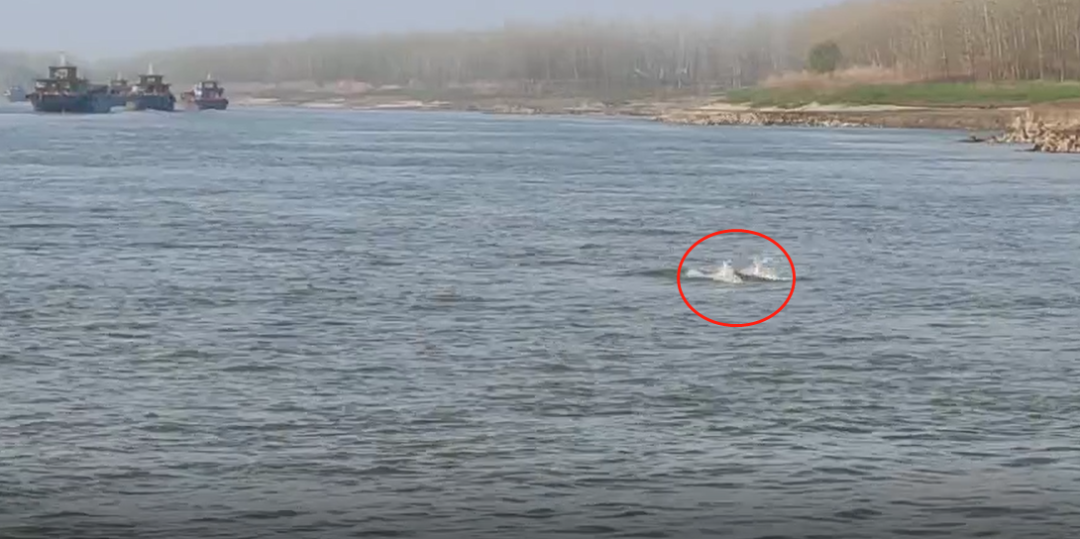 有2到3头江豚分成多个组群,分别在江面上两个区域里翻腾戏水。看到珍稀野生动物与大自然如此和谐共生,海事人员也很惊喜。这是今年长江江豚升级为国家一级保护动物后我国首次在野外环境拍摄到江豚的野生群。