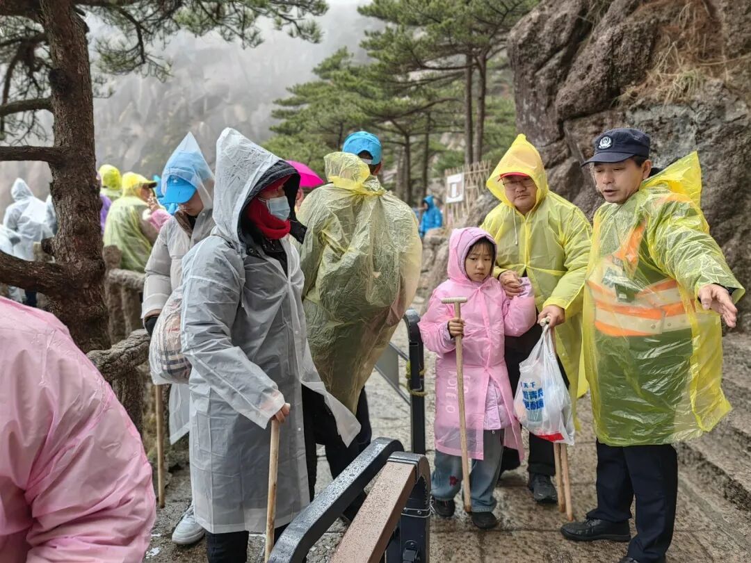 另,针对此次降雨天气,景区各单位坚守岗位,在路口、索道、游道等关键区域,都有他们忙碌的身影。景区公安干警提前到岗,加大巡查力度,维护旅游秩序,保障交通安全;景区集散中心、索道、酒店等单位为游客提供热水、姜茶、免费点心等暖心服务;景区集散中心通过电子显示屏发布温馨提示,让游客及时了解候乘情况;随处可见的执勤人员和志愿者为游客提供路线指引和旅游咨询,耐心解答游客的疑问,提醒游客看护好老人儿童。