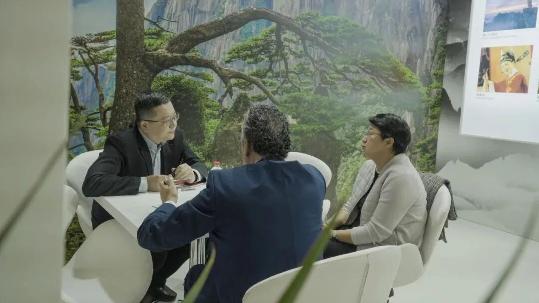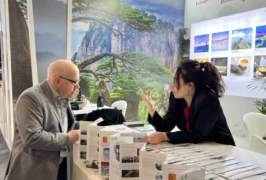 此外,黄山旅游还组织专人在展会期间发放《黄山游玩指南折页》及“黄山好礼”文创礼品,同时在洽谈区就大黄山区域旅游资源、徽州文化特色及精品国际旅游线路等进行洽谈。
