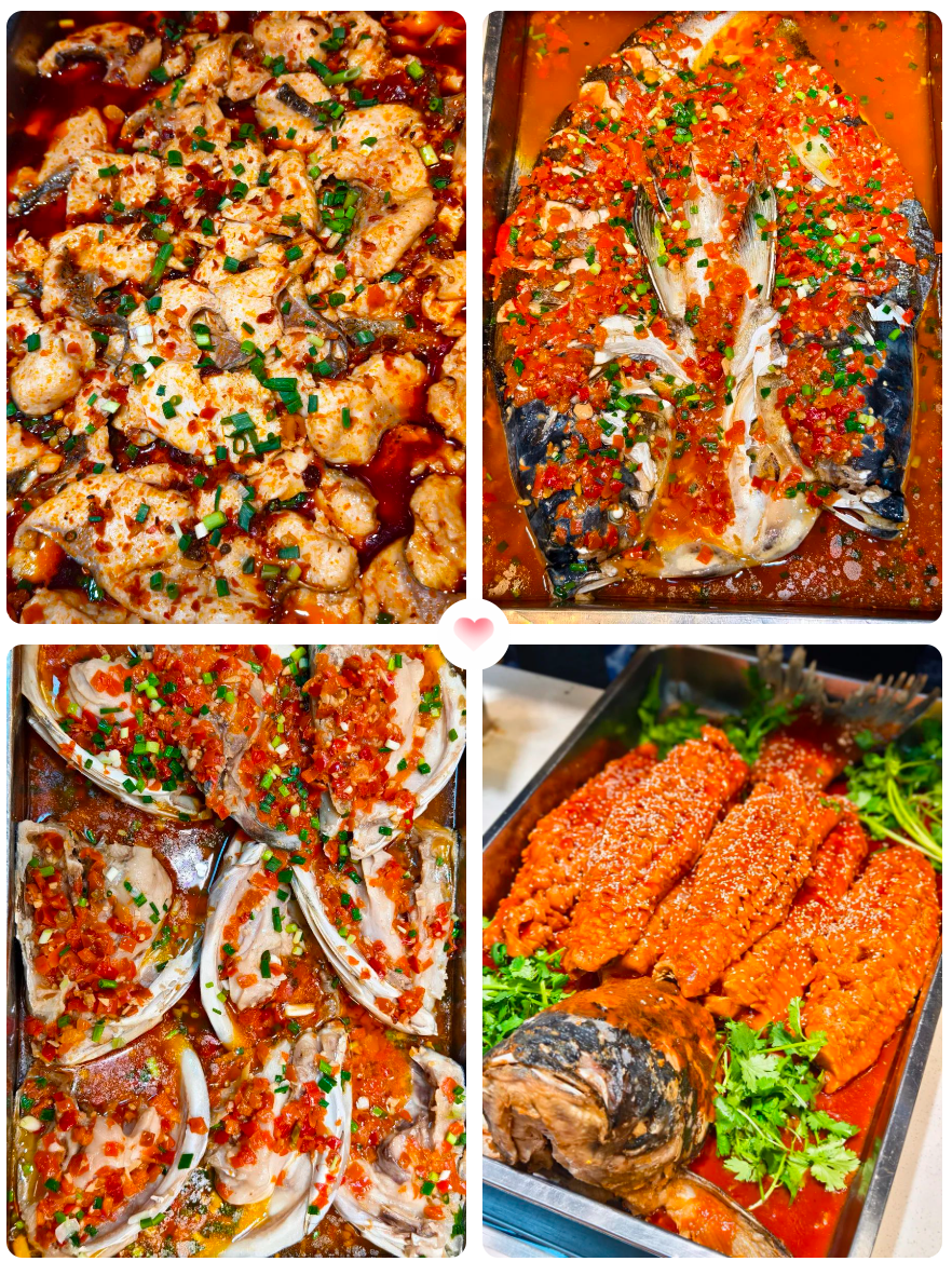 酸菜鱼、糖醋鱼、葡萄鱼、红烧鱼块、剁椒鱼头、手打鱼丸……十余种不同菜品组成了丰盛的“全鱼宴”。(据中国青年报)