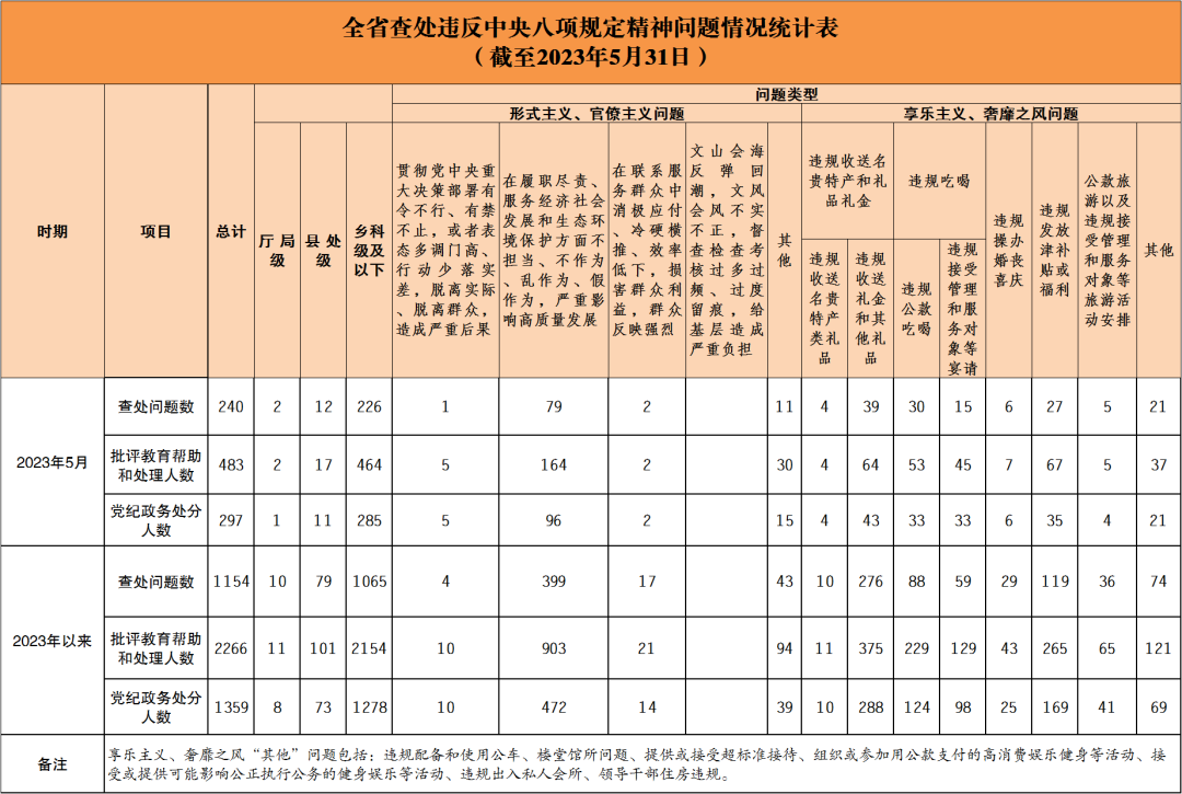 2023年5月全省查处违反中央八项规定精神问题240起