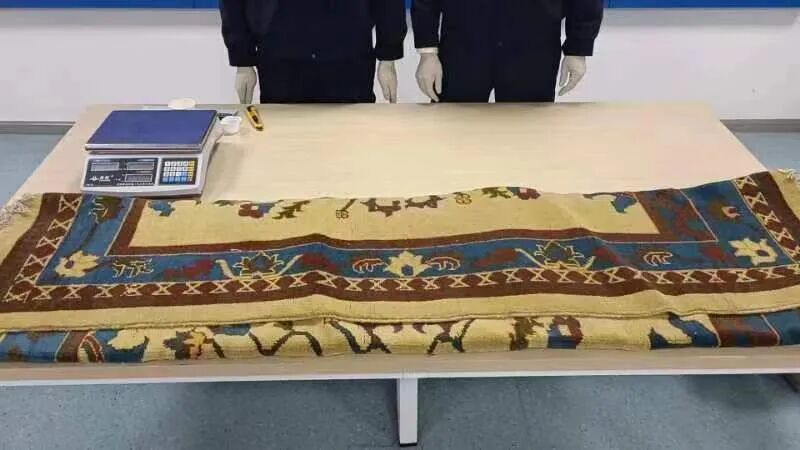 深圳邮局海关关员在对过境货物开展监管时发现,1票包裹机检图像可疑,随即对其开箱查验。查验发现,该票包裹内有一块做工精致的地毯,编织到地毯内的透明细塑料管中藏匿有细粉末一批,毛重11555.8克。经现场试剂检测,判断为冰毒。目前,海关缉私部门已介入调查处理。