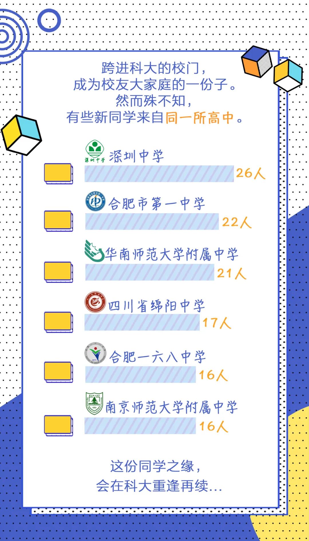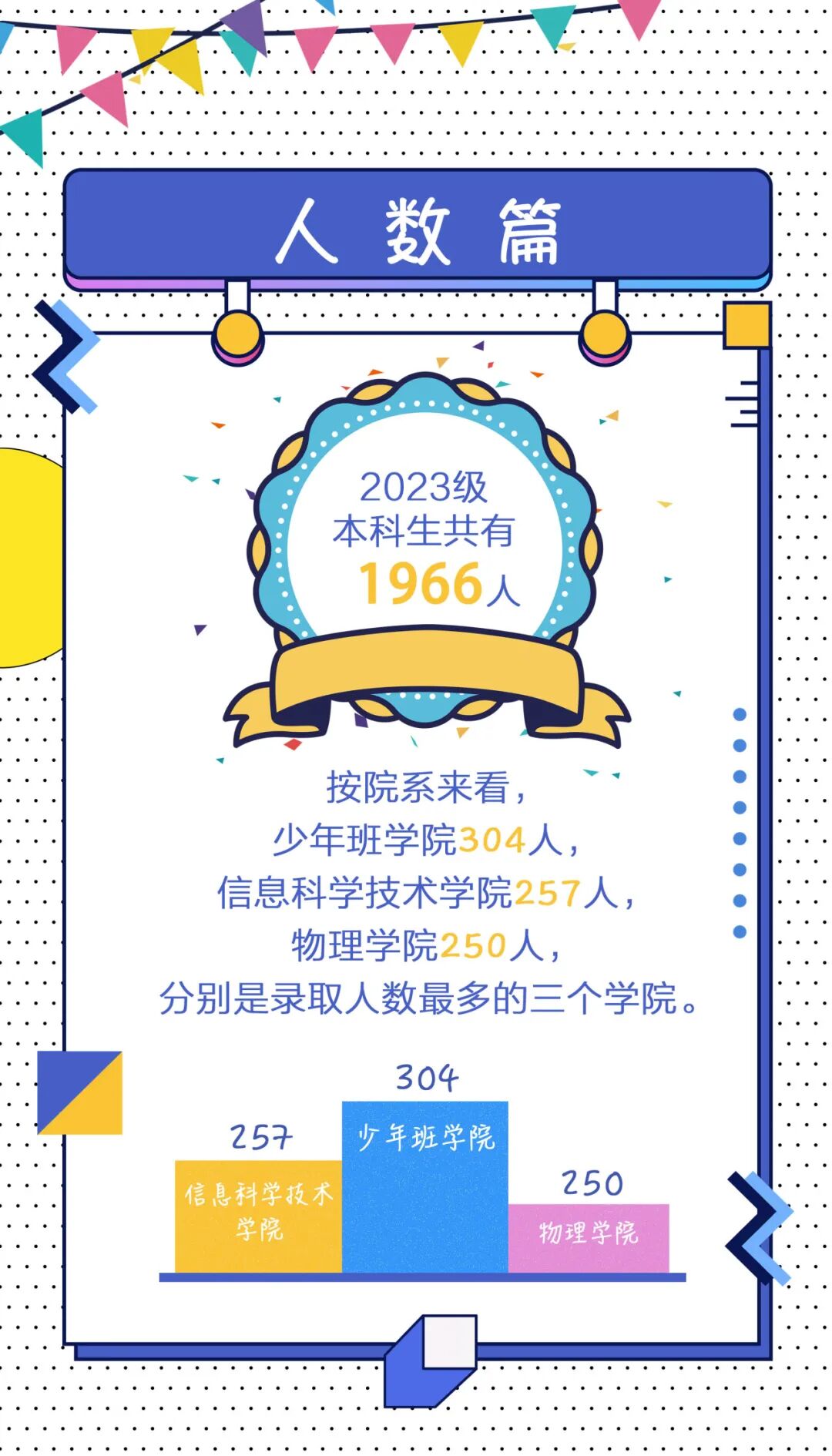 中国科大录取2023级本科生1966名 其中安徽303人 发布时间:2023-08-25 12:20 来源:中国科学技术大学 据中国科学技术大学微信号消息,8月25日,中国科学技术大学进行2023级本科生数据大揭秘。数据显示,中国科大今年共录取本科生1966名,其中安徽303人。深圳中学26人被录取到该校,而合肥一中有22人。具体如下: 相关阅读 中国科大将建设世界一流科技商学院 中国科大科技商学院为中国科大二级实体学院,充分融合中国科大理工生医等学科优势,探索“实践+实战+理论”的教学模式和培养模式,大力培养复合型科技产业组织人才。 中国科大制备出高效稳定的钙钛矿单晶LED 该研究团队利用空间限制法生长出高质量、大面积、超薄的钙钛矿单晶,并首次制备出亮度超过86,000 cd/m2,寿命高达12500 h的钙钛矿单晶LED,向钙钛矿LED应用于人类照明迈出了重要一步。 “中国科大—协和医学英才班”来了!符合要求的未来可推免直博 这次两校战略合作协议的签署,进一步深化两校合作,依托生命科学与医学部、少年班学院,联合成立“中国科大—协和医学英才班”,必将吸引更多优秀的青年学子加入到医学创新队伍中来 登录 评论一下 评论 0人参与,0条评论 还没有评论,快来抢沙发吧! 最热评论 最新评论 已有0人参与,点击查看更多精彩评论 请输入验证码 × 确定 取消
