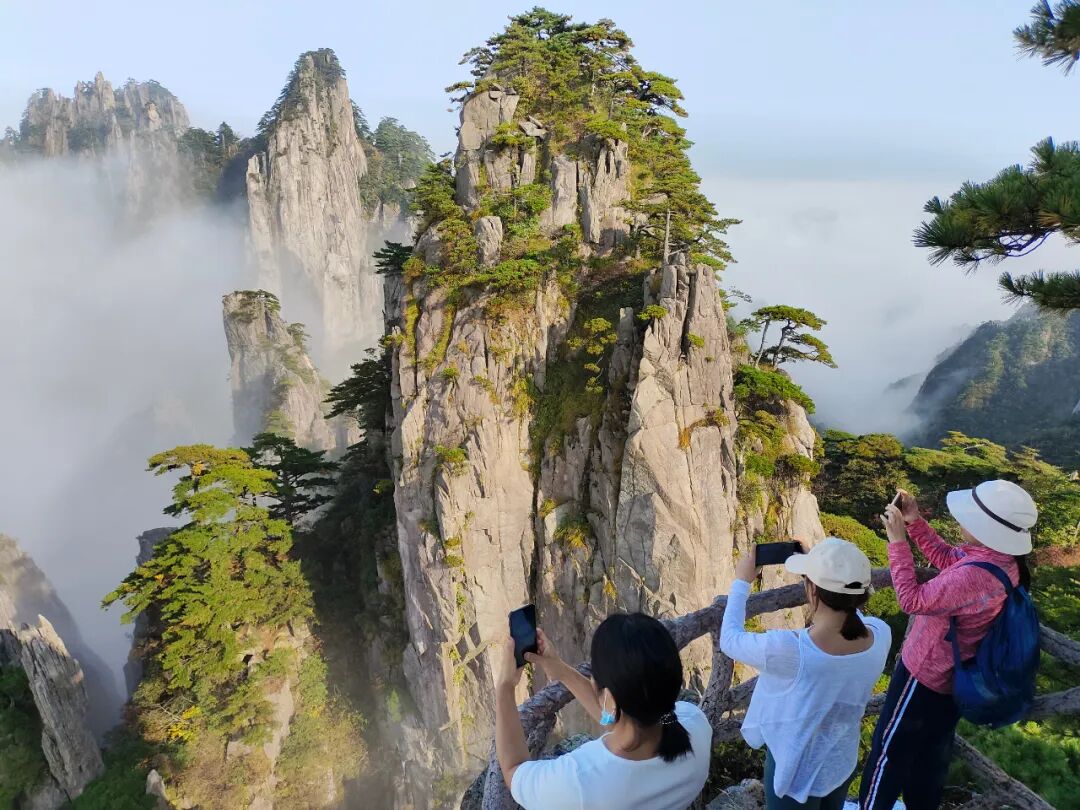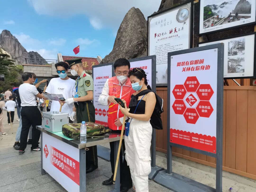 国庆期间,黄山景区实行高速口、酒店前置查验,景区入园协同核验,推行全市核酸采样凭证互认,延长采样时间,加密送检频次,日采样能力最大达20160人次,满足“落地检”需求。严把入园核验关,加强换车辆、索道等场所码应用,各单位落实场所码“应扫尽扫”,常态化防控能力持续提升。景区6个片区设立迎客松志愿服务台共16个,每天抽调志愿者近百人,充实到一线参与执勤,为游客提供路线指引、景点介绍、景区交通等温馨暖心服务。