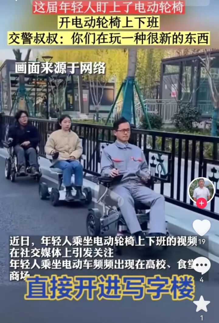 “青春没有售价,轮椅直达拉萨”“家人们谁懂啊,坐电动轮椅通勤太香了”……近来,在抖音、小红书等短视频社交平台,年轻人坐着电动轮椅出行的视频刷爆网络。