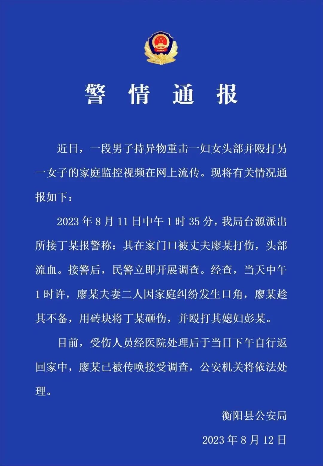 8月12日晚,衡阳县公安局对此事发布警情通报。