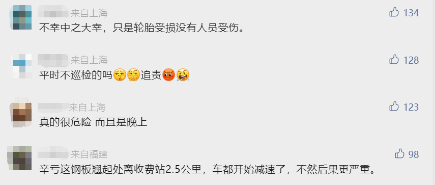 记者从知情人士处了解到,事发高速确为S32申嘉湖高速,由于桥梁连接处钢板翘起导致车辆轮胎受损,该处隐患已经连夜完成修护。