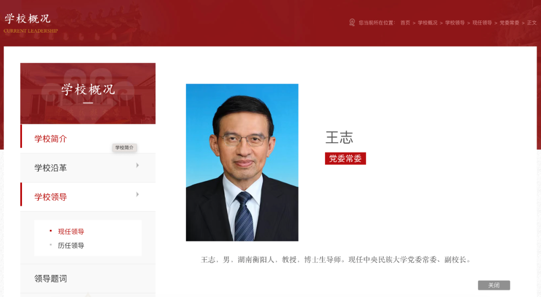 据中央民族大学官网“学校领导”栏目显示,央视原主持人王志已任中央民族大学党委常委、副校长。