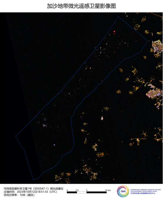 当地时间10月12日晚10时左右,可持续发展科学卫星1号拍摄的加沙地带夜景图像