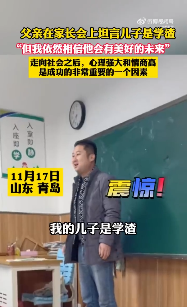 近日,一条家长会的视频火上了热搜,一位爸爸在家长会上分享自己对“学渣儿子”的认可和祝福。