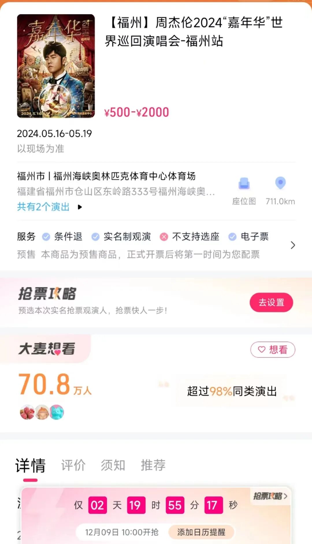以2024年5月16日场为例,预售开始时间为2023年12月9日10点。退票规则写明: