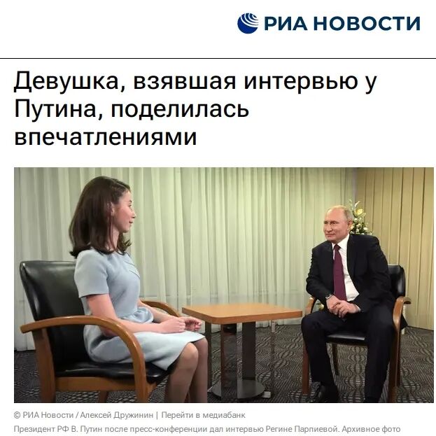 普京接受失明女孩采访。图片来源:俄新社报道截图