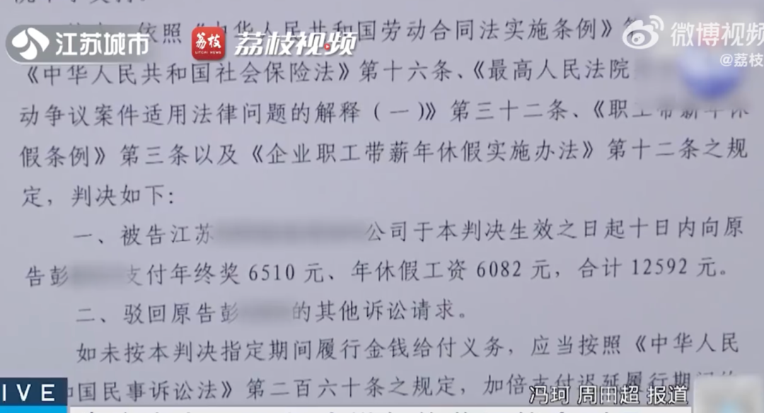 此后,彭女士提起诉讼,要求公司支付年终奖。