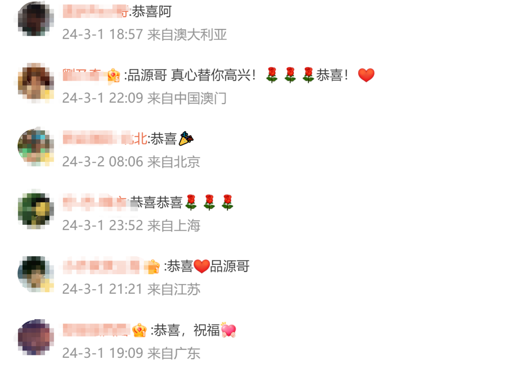 在黄品源发布微博后,很多好友和粉丝送上了自己的祝福。