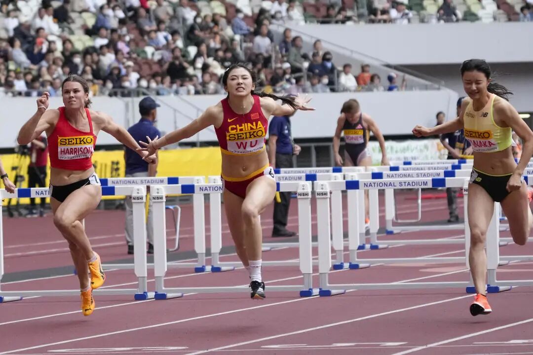 当地时间2024年5月19日,日本东京,2024世界田径洲际巡回赛东京站女子100米栏,吴艳妮以12秒80的成绩夺冠 图据视觉中国