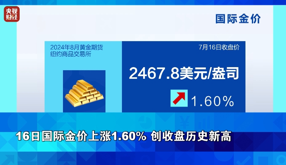 16日国际金价上涨1.60% 创收盘历史新高