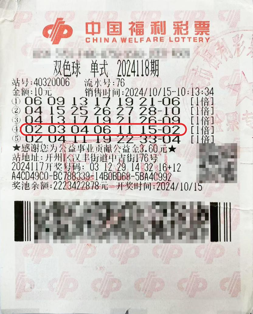 10月15日,福彩双色球第2024118期开奖,共开出64注二等奖,其中一注落在了重庆开州区彩民的一张10元“单式”彩票上,奖金41.9万余元!