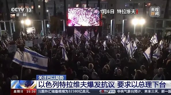 当地时间1月6日,以色列多地爆发反对以色列总理内塔尼亚胡的抗议示威集会,抗议者们要求立即举行选举。