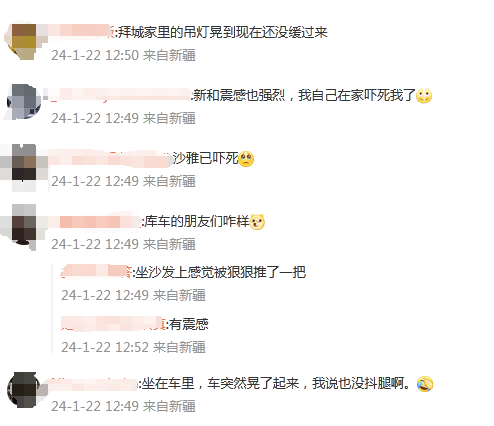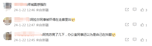 突发!新疆阿克苏地区发生地震 发布时间:2024-01-22 14:23 来源:中国新闻社 据中国地震台网正式测定:1月22日12时33分在新疆阿克苏地区拜城县(北纬41.97度,东经81.11度)发生4.8级地震,震源深度16千米。 图片来源:中国地震台网速报微博 多位网友表示“有震感”。 据中国新闻社 相关阅读 今天凌晨,这里发生地震 据中国地震台网正式测定,9月20日1时51分在陕西延安市富县发生3.1级地震,震源深度24公里,震中位于北纬35.93度,东经108.65度。 6.9级!刚刚这里突发地震 据中国地震台网正式测定,北京时间11月22日12时47分(当地时间11月22日15时47分)在瓦努阿图群岛发生6.9级地震,震源深度10公里,震中位于南纬15.05度,东经168.15度。 连云港深夜突发地震,周边不少城市有震感 据中国地震台网正式测定,12月7日23时1分在江苏连云港市赣榆区海域发生3.8级地震,震源深度8公里,震中位于北纬34.90度,东经119.86度,距海岸线最近约39公里 刚刚,河北一地突发地震 10月13日08时37分在河北唐山市乐亭县海域(北纬39.05度,东经119.61度)发生2.3级地震,震源深度8千米。 甘肃酒泉发生3.1级地震 中国地震台网正式测定:10月25日03时33分在甘肃酒泉市肃北县(北纬39.31度,东经97.28度)发生3.1级地震,震源深度10千米。 登录 评论一下 评论 0人参与,0条评论 还没有评论,快来抢沙发吧! 最热评论 最新评论 已有0人参与,点击查看更多精彩评论 请输入验证码 × 确定 取消