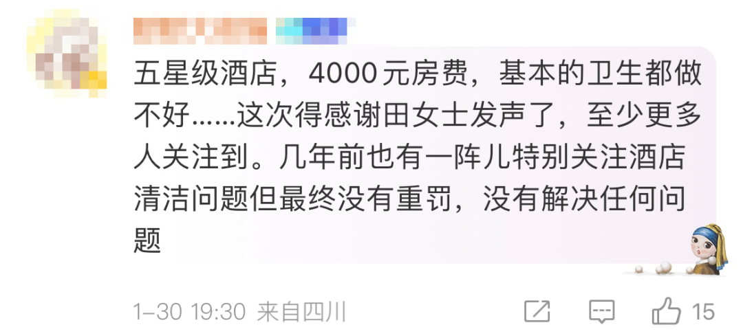 田朴珺的遭遇引发了网友们的广泛关注和讨论。很多人表示,酒店卫生问题一直是消费者关注的重点之一,任何酒店都应该重视卫生清洁工作,确保客人的健康和舒适。