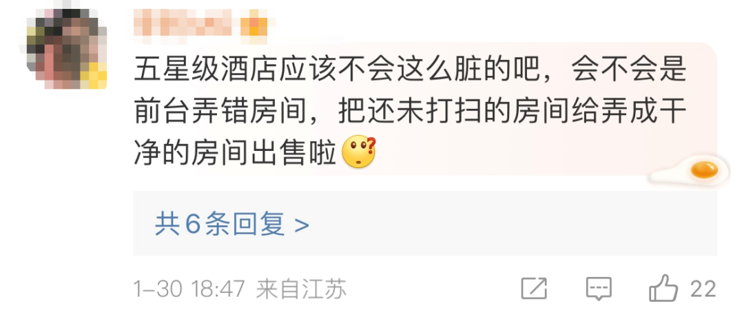 田朴珺称,酒店的处理态度也震碎三观,对于床上有血迹,酒店工作人员说给个下午茶好了,之后还说血迹是新的,怀疑是她自己蹭的,为了免房费讹酒店。