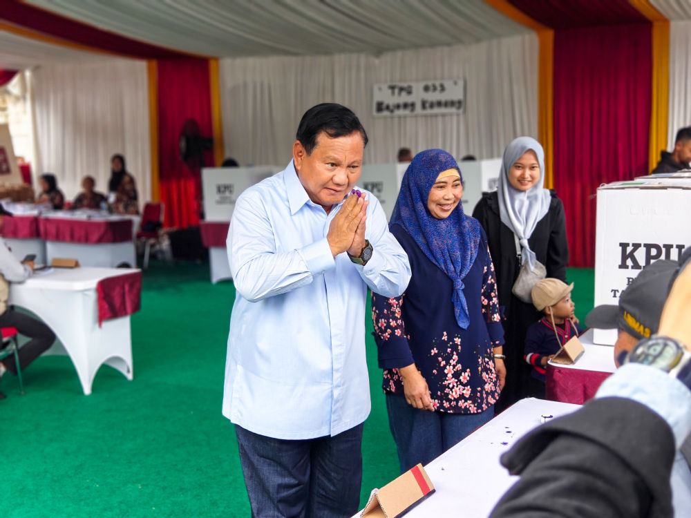 印尼每五年举行一次大选,正副总统候选人结对参选。参与此次总统选举的三个组合分别是:现任国防部长普拉博沃·苏比安托与印尼总统佐科长子、梭罗市市长吉布兰·拉卡布明·拉卡,雅加达首都特区前省长阿尼斯·巴斯维丹与民族觉醒党总主席穆海明·伊斯坎德尔,中爪哇省前省长甘贾尔·普拉诺沃与前政治、法律和安全事务统筹部长穆罕默德·马赫福兹·马哈茂丁。三组总统候选人及佐科夫妇当日上午分别前往投票站投票。