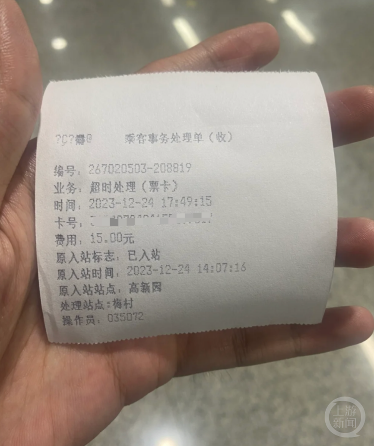 2月18日,上游新闻(报料邮箱:baoliaosy@163.com)记者在小红书平台以“深圳地铁罚款”为关键词检索,看到这并非个例。去年12月底,有一网友晒出凭证称,在高新园入站后,在地铁站待了超3个小时,缴了15元才出了地铁站。