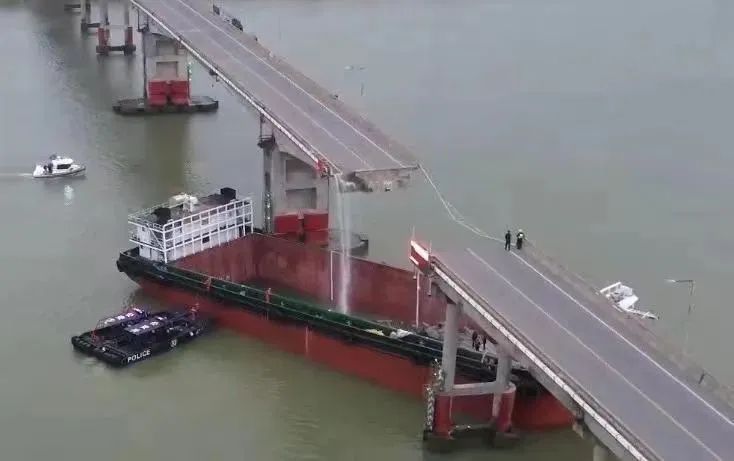 △2月22日,广州南沙沥心沙大桥被船只撞击致大桥桥面断裂。