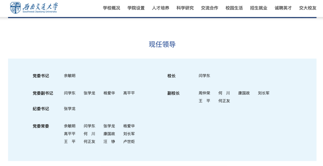 据成都日报报道 西南交通大学官网“现任领导”一栏近日更新显示,王平、何正友已任西南交通大学副校长。