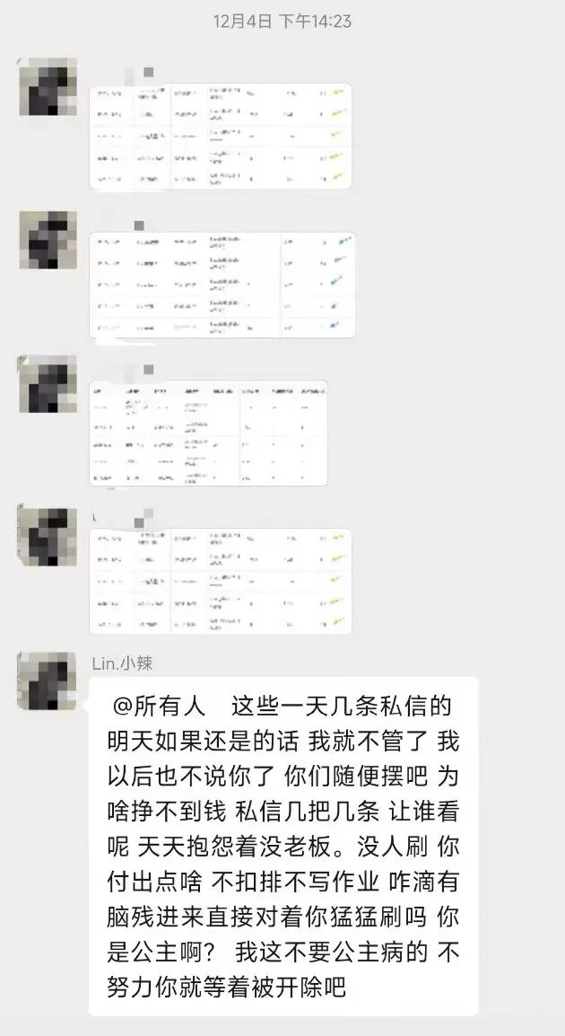 张靓说,她没有想到,播了几天后,MCN机构要求她“扣作业”:寻找那些刷礼物多的用户,即给“大哥”发私信,发腿照,也可以用网图,要求每天发50条私信。