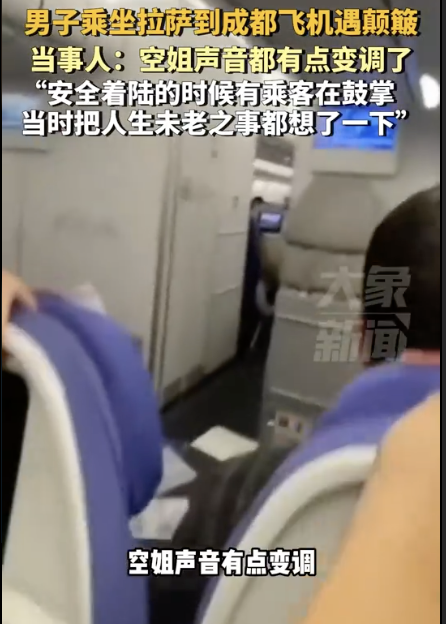 3月3日晚上,西藏航空9846航班拉萨至成都,一航班乘客发视频称临近降落时遇到气流颠簸多次,现场乱成一片。