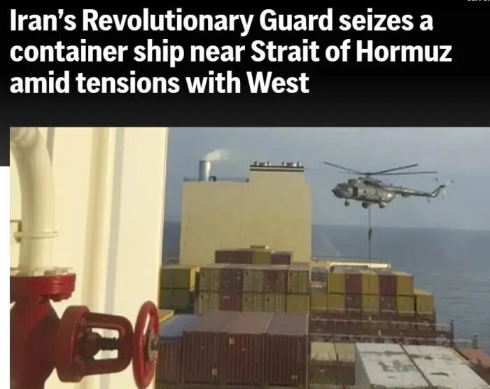 报道称,在执行直升机有关行动期间,一艘名为“MCS Aries”的集装箱船遭伊朗伊斯兰革命卫队海军特种部队扣押,这次行动发生在“霍尔木兹海峡附近”。