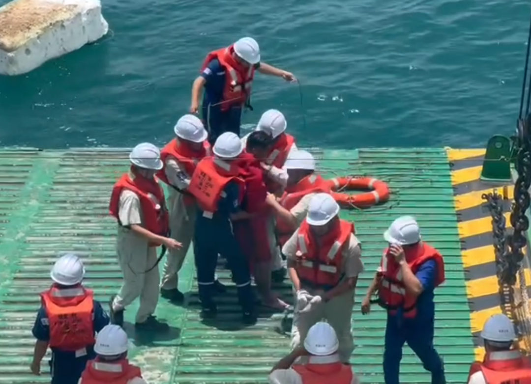 在距离落水男子约5米的位置处,黄万里的同事向该男子抛去救生圈,“他都没抓,可能是实在没力气了。”12时29分,多人齐心协力将男子救上了船,整个救援过程仅用了近10分钟。
