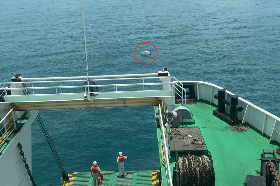几天前,海南海峡航运股份有限公司旗下船舶“银紫荆”轮,从新海港开往徐闻港途中,船长黄万里看到海上有一个大型泡沫漂浮物,“漂浮物的旁边还隐约可见一个黑色物体。”