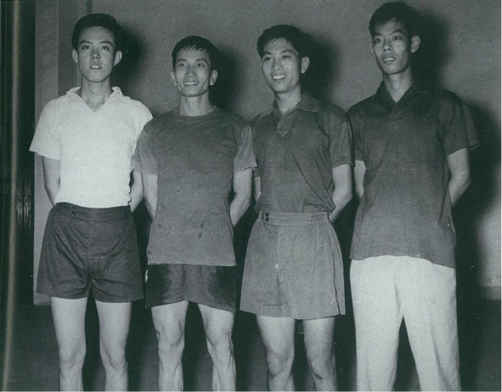 1958年全国锦标赛前四名合影,左起:容国团、姜永宁、庄家富、胡炳权