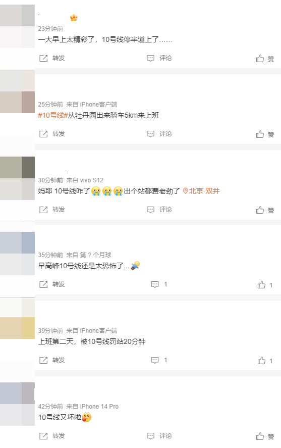 今早7时许,@北京地铁 发布通告称,地铁10号线因车道沟站设备故障,影响车道沟至首经贸外环(逆时针)方向列车运行缓慢。目前故障已修复,运营秩序正在逐步恢复中。